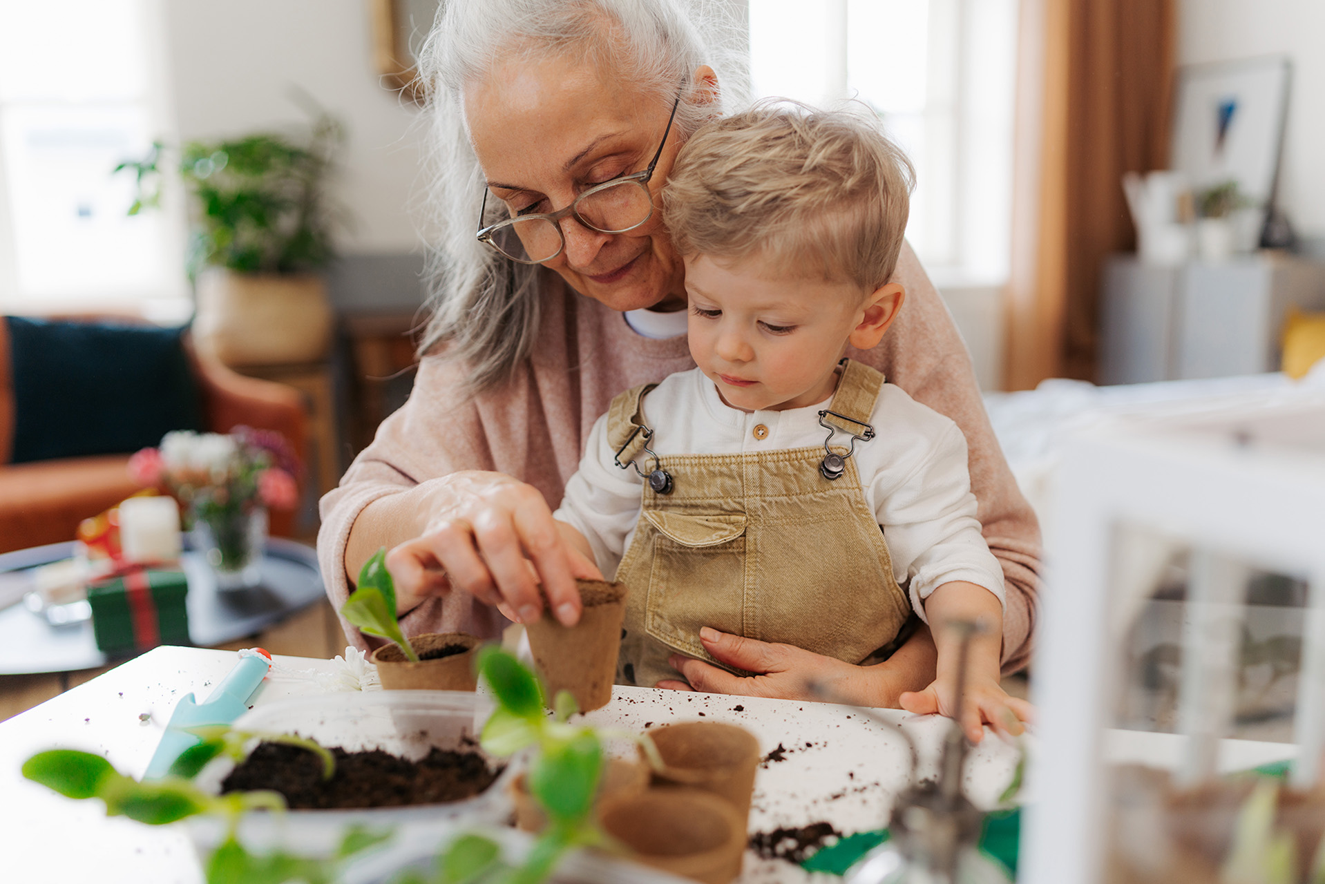 Bring a little bit of spring indoors by planting a seed together. Place a bean or seed in a cup with a little soil or a damp paper towel and add water. Then check on it each day to see how it changes and grows. Kids love watching the transformation while learning about responsibility, observation and early science.